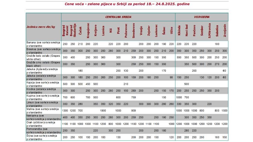 Pogledajte kompletan pregled cena voća i povrća po gradovima: