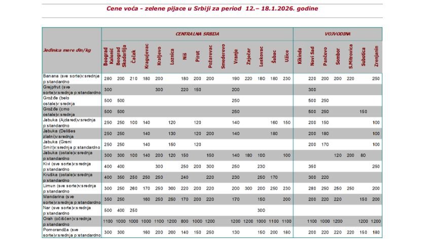Pogledajte kompletan izveštaj sa cenama na pijacama:
