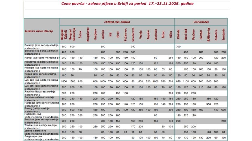 Pogledajte kompletan pregled cena voća i povrća po gradovima: