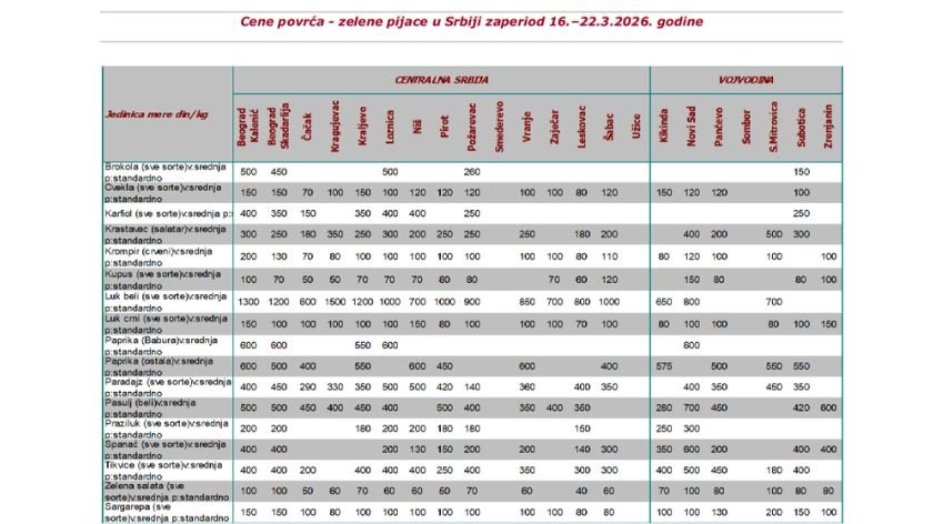 Pogledajte pregled cena na pijacama širom Srbije: