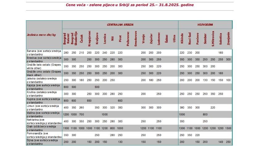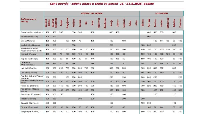Pogledajte kompletan pregled cena na pijacama širom Srbije: