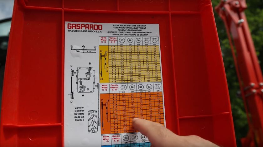 ,,Na svakoj sejalici na jednoj bateriji kao i na poklopcu napred ima tablica po kojoj štelujemo razmak biljaka u redu. Gledamo koji razmak hoćemo da imamo u setvi i imamo menjač koji služi za štelovanje razmaka u redu.