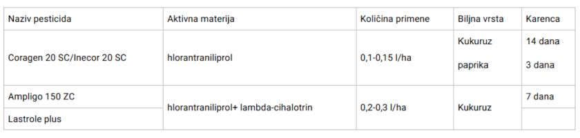 - U usevima kukuruza šećerca gde je berba u toku ne preporučuje se primena hemijskih mera zaštite. Prilikom sprovođenja hemijskih mera zaštite treba strogo voditi računa o karenci primenjenog preparata!